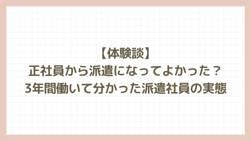 【体験談】正社員から派遣になってよかった?3年間働いて分かった派遣社員の実態