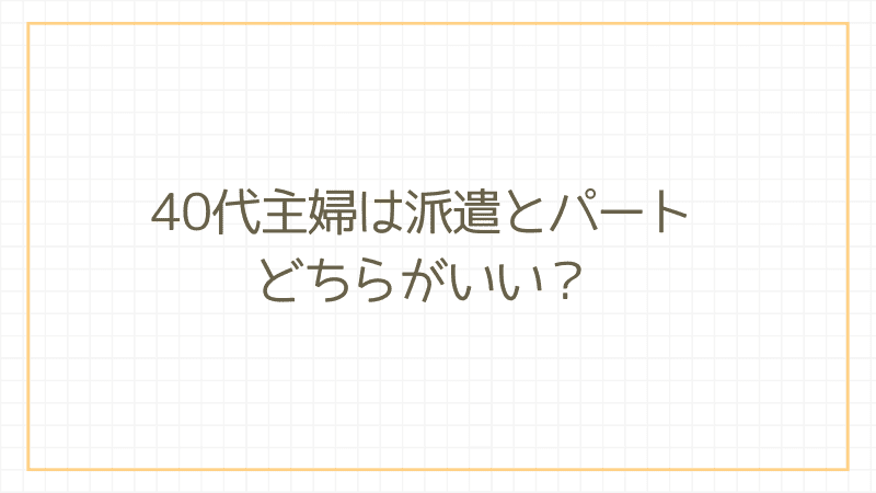 40代で「派遣」か「パート」かどちらがいいか悩む方は多いのではないでしょうか。
